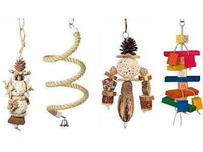 Lanová závěsná hračka 50 cm pro šplhání a houpání papoušků, stimuluje pohyb a zábavu ve voliéře či kleci.