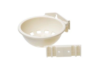 Pozinkovaný držák bidel o velikosti 75 x 55 mm. Vhodný pro menší druhy exotického ptactva.